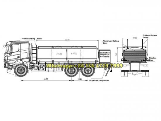 Заправочная цистерна Beiben объемом 12000 литров — это профессиональное мобильное заправочное оборудование, построенное на базе тяжелого шасси Beiben 2638. Она оснащена дизельным двигателем мощностью 380 лошадиных сил в паре с 12-ступенчатой коробкой передач. Цилиндр имеет секционную конструкцию из углеродистой стали и способен вмещать различные виды топлива. Транспортное средство оборудовано двумя заправочными колонками, каждая с производительностью 80 литров в минуту, а также системами нижней загрузки/разгрузки, установками улавливания паров и полным комплектом устройств безопасности, обеспечивающих безопасную и эффективную транспортировку топлива и заправку на месте.