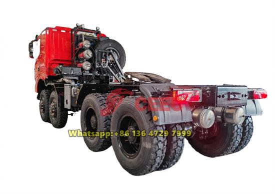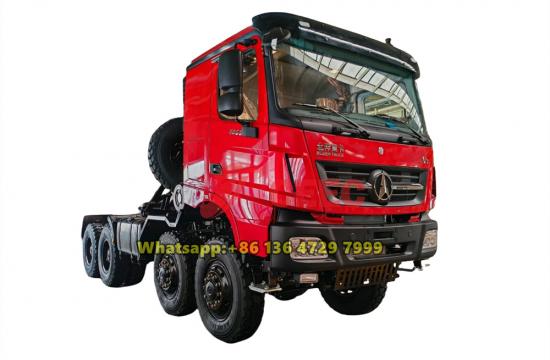 RHD drive, 12.00R24 tyresТягач Beiben 8×8, оснащенный мощным дизельным двигателем мощностью 550 л.с., отлично подходит для перевозки тяжелых грузов в экстремальных условиях бездорожья. Высокий крутящий момент и адаптивное распределение мощности обеспечивают надежную работу в таких отраслях, как строительство, горнодобывающая промышленность и ликвидация последствий стихийных бедствий, где преодоление грязи, песка и каменистых ландшафтов является обычным делом. Тягач Beiben 8x8 Система полного привода 8×8 в сочетании с блокировками дифференциалов и усиленными мостами гарантирует оптимальное сцепление на неровных поверхностях. Такая конфигурация позволяет отдельным колёсам сохранять инерцию даже при частичном приподнятии или погружении, что делает его незаменимым для военной логистики, разведки нефтяных месторождений и лесозаготовок. Тягач Beiben 8×8 Drive имеет большой дорожный просвет и увеличенные углы въезда/съезда, что дополнительно предотвращает повреждение днища на неровных дорогах.