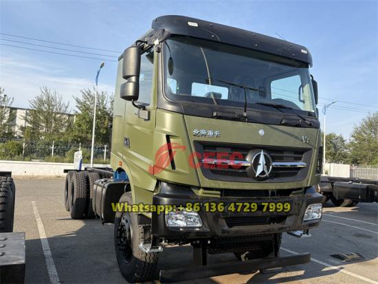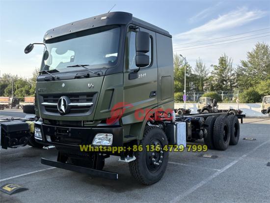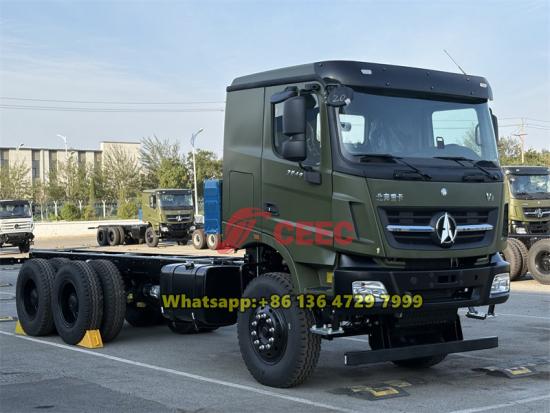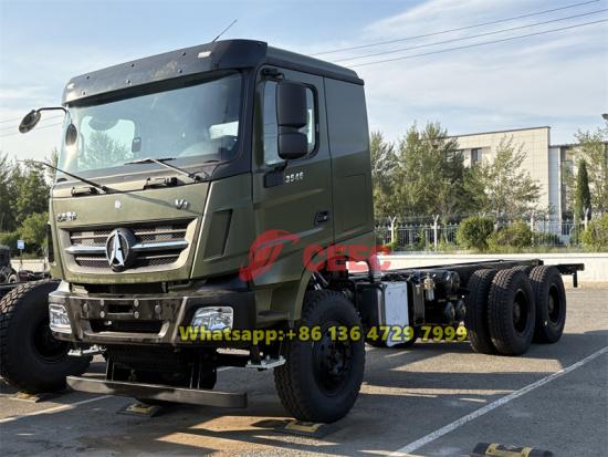 Шасси тяжёлого грузовика Beiben V3 6×4 разработано для работы с большими грузами. Полная масса автомобиля составляет 35 тонн. Оно оснащено мощным двигателем WP12.460E50 (460 л.с.) и прочной трансмиссией FAST 12JS200T, что обеспечивает превосходные эксплуатационные характеристики и надёжность. Высокопрочная рама и оптимизированная подвеска обеспечивают исключительную грузоподъёмность, что делает его подходящим для строительных перевозок, логистики и других тяжёлых работ. Соответствуя экологическим стандартам Евро-5, грузовик идеально подходит для рынков Центральной Азии и Латинской Америки.