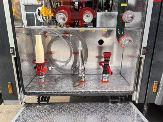 is equipped with a CB10/60 constant-pressure fire pump and a PL48 dual-purpose water/foam monitor. The fire pump delivers a flow rate of 60 liters per second, while the monitor provides long-range, stable pressure coverage, effectively addressing large-scale fire incidents. The vehicle’s design emphasizes both practicality and user-friendliness, with a logically arranged pump compartment and intuitive instrument controls. The rear equipment compartment features double-layer partitions and aluminum alloy roll-up doors, facilitating easy access and maintenance of gear. Compliant with Chinese fire truck technical standards such as GB7956, this vehicle is a highly efficient firefighting and rescue asset suitable for urban areas, industrial zones, highways, and various other scenarios.