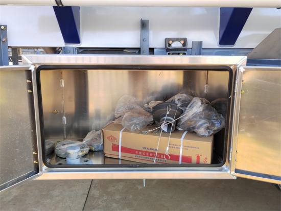 Габариты цистерны составляют 12 000 мм × 2500 мм × 3280 мм, она оснащена тремя осями Fuwa грузоподъемностью 13 тонн для обеспечения устойчивости. Корпус цистерны изготовлен из высокопрочной углеродистой стали Q235 толщиной 5 мм и разделен на 5 независимых отсеков, каждый объемом 8000 литров. Каждый отсек оснащен внутренними перегородками для повышения безопасности и предотвращения разбрызгивания жидкости. Цистерна оснащена люком диаметром 500 мм европейского стандарта с вентиляционным клапаном, 4-дюймовым поворотным затвором и алюминиевым пневматическим донным клапаном. В сочетании с прочной 28-тонной опорой и тормозной системой WABCO, конструкция обеспечивает баланс практичности и надежности.